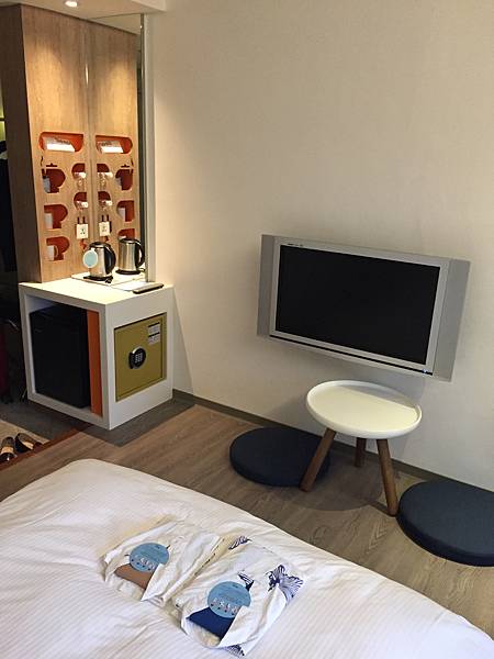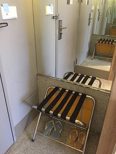 一進房左側小小的行李架,附贈兩雙拖鞋,印著捷絲旅的夾腳拖,喜歡還可以帶走