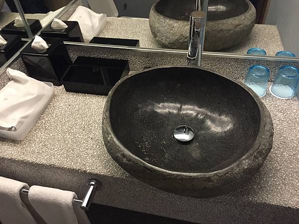 右側是廁所,小小一間,有特殊造型石頭洗手台